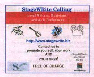 StageWRite will bepresentinga series of performance writing sessions in 2009 at the Aldinga Community Centre, beginning in March. Each session will be hosted by StageWRite performance writers who will be joined by other performance professionals, (directors, performance artists, designers and technicians), to help session participants produce their own piece of performance writing for stage, screen or multi-media. Only $10 per session.